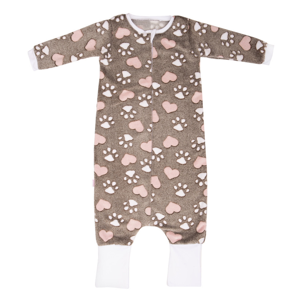 Wellsoft mintás elől cippzáras, hosszú ujjú puha meleg lábas hálózsák.br Ideális választás a kisgyermek kényelmére.br A lábszára lehajtható a lábfejére, és totyogós hálózsáknak kiváló br Anyaga 100% poliészter Passzé 100% pamut